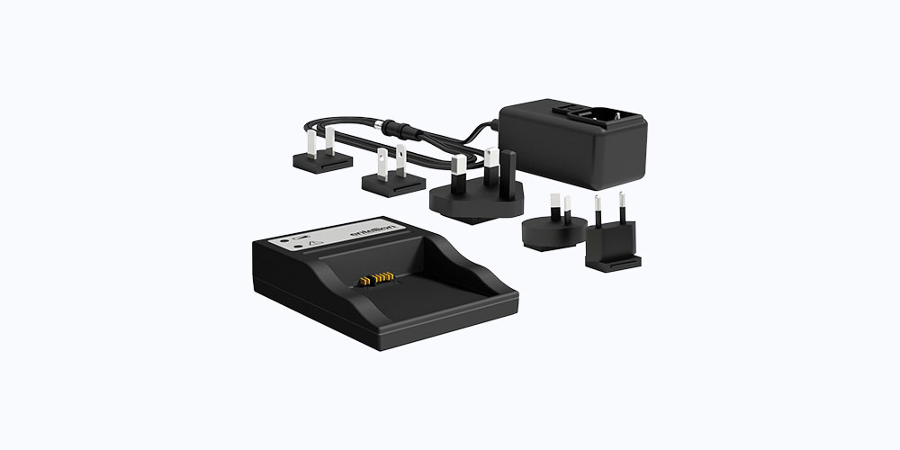 - Mobile Power Kit Battery Charger – As well as Mobile Power Kit batteries being charged when it is plugged into AC mains, the batteries can be removed and placed in the 2-bay X5 Smart Battery Charger, which can be either desk or wall mounted.
